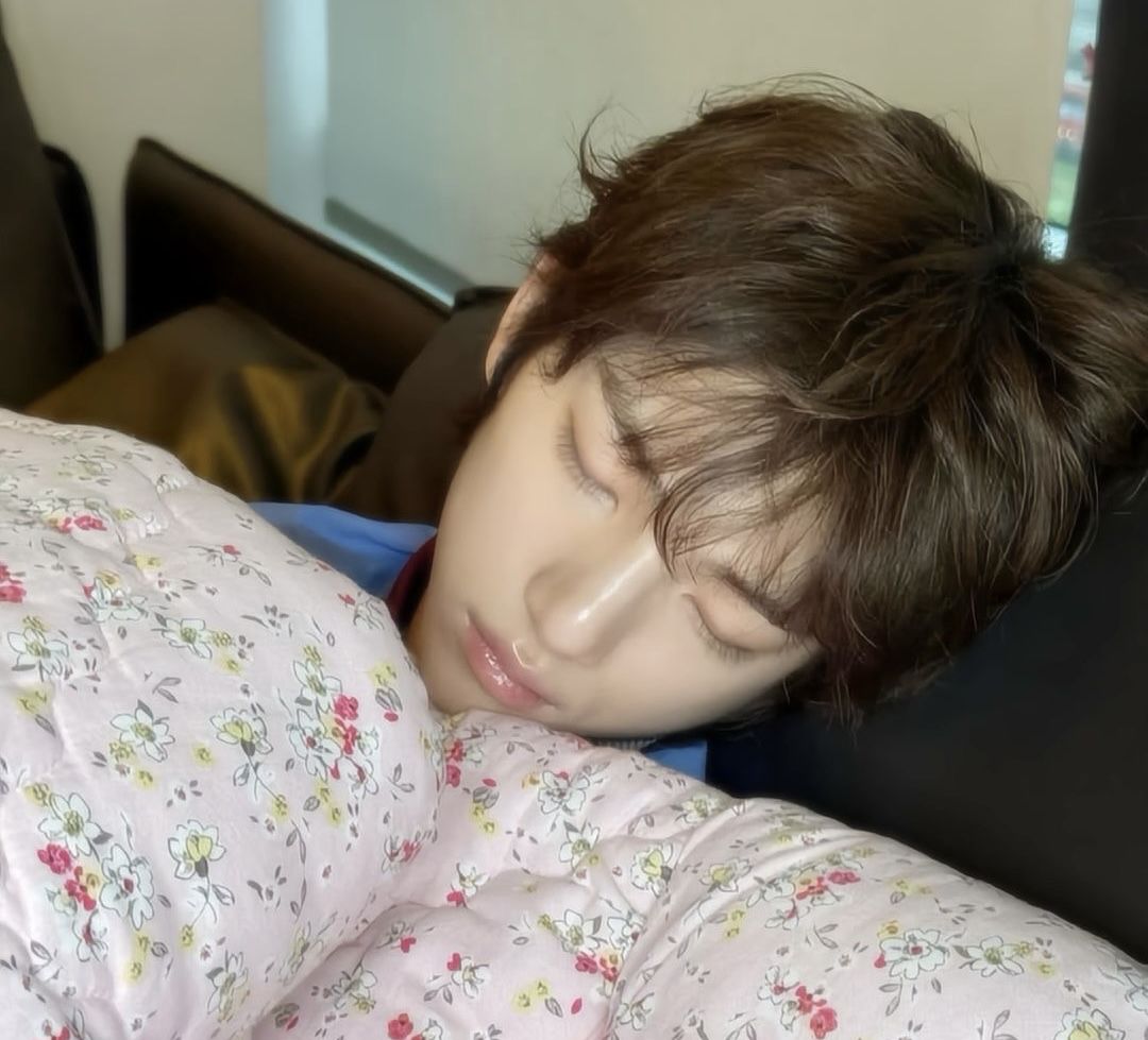 Juhoon chỉ kịp ngáp một cái và lắc đầu yếu ớt rồi... gục xuống vai anh.
