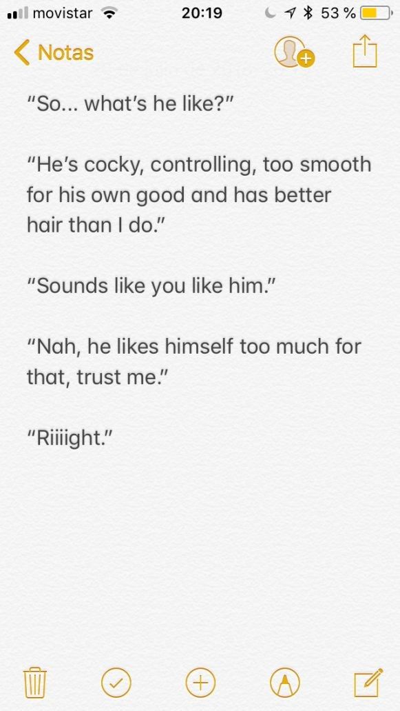 "He's cocky, controlling, too smooth for his own good and has better hair than I do."