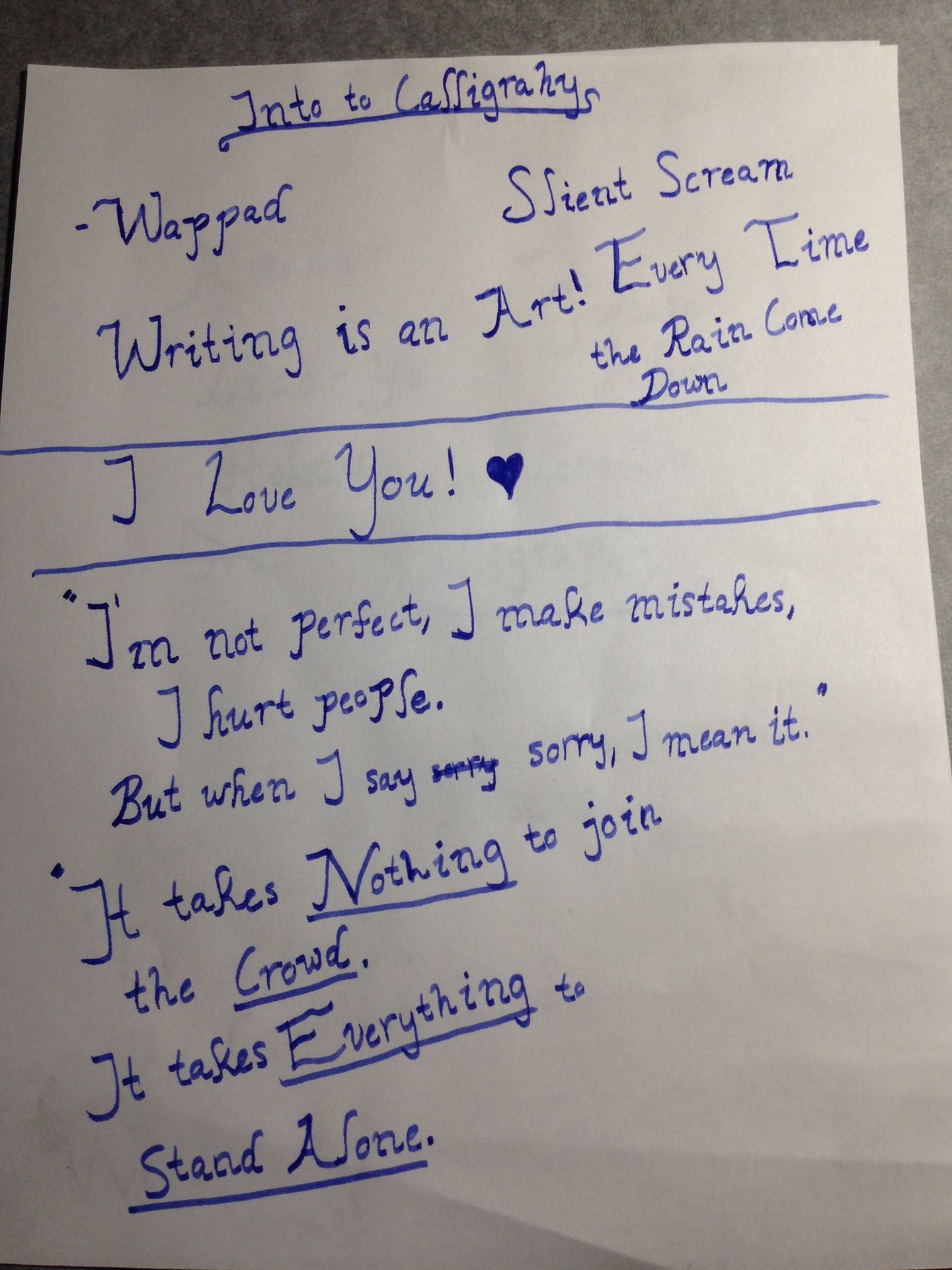 Anyways, a few days ago was the first day of summer for the Northern Hemisphere! (Just fun fact) but that isn't the point. June 21st was also the first day that I had started writing calligraphy! (Hence the obvious title for this ramble)