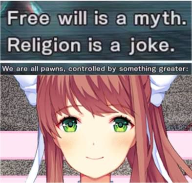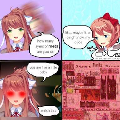 So I've been looking some Doki Doki Literature Club memes and so if anyone has not played it well spoiler alert .