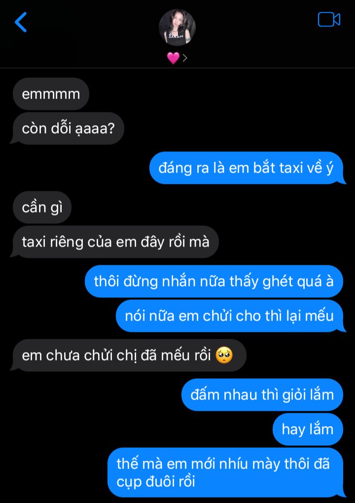 "đúng là cái đồ hèn, đấm không lại tôi nên mách minjeong chứ gì? may cho cô là minjeong đến đấy, chứ không là cô nằm bẹp dí rồi"