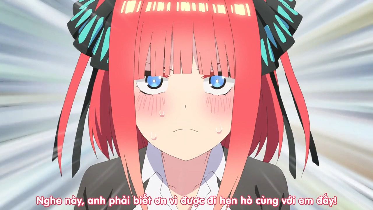 Nino: Chị không biết Yotsuba định nói gì nhưng mà... từ đầu chị đã quyết định thế rồi. Đi với người mình thích. Cậu không có quyền từ chối đâu. *Chỉ tay thẳng mặt Fuutarou*