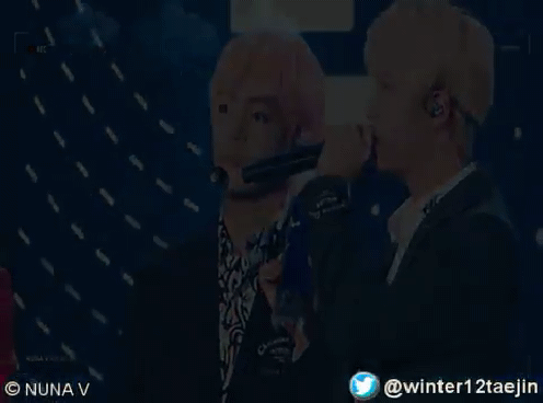 Thứ 2: Lần này Jin đã hiểu ý của Tae. Ở gif thứ 3, nếu mọi người để ý kĩ 1 chút, bạn sẽ thấy Jin đã cắn môi. Cái này thì phải xét theo phương diện tâm lý rồi. Cắn môi. Tại sao con người ta lại cắn môi 🤔. Đây chính là 1 hành động khá là vô thức của nhiều người ( đặc biệt là những ai hay yếu bóng vía). Mình cũng hay như vậy. Khi lo lắng, hồi hộp hay sợ 1 điều gì đấy, cắn môi hay tự bấu vào tay mình là cách mà mình giảm tâm lý đó xuống. Nhưng nếu xét trong trường hợp này thì nó không quá nghiêm trọng như mình nói ở trên. Mình đang lấy VD thực tế để mọi người hiểu. Ở đây, sau khi nhìn về phía của Tae, có vẻ như anh đã phát hiện ra gương mặt không thoải mái của cậu bé, anh đã cắn môi mình. Mình không chắc chắn rằng lúc đó Jin cảm thấy gì có phải là anh cảm thấy sợ Tae hay không, nhưng cái cách anh " giải quyết vấn đề " đã cho mình câu trả lời