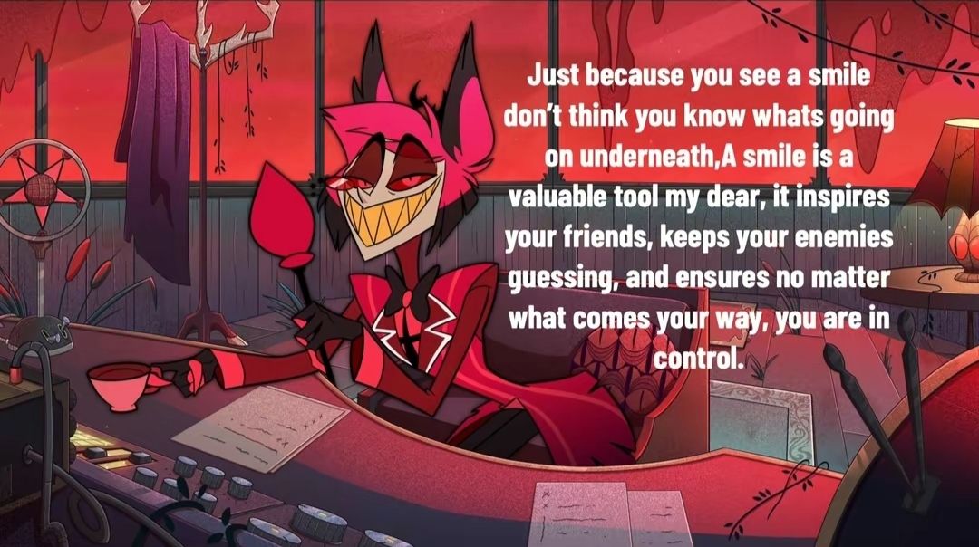 2. Mình lấy câu thoại của Alastor trong Hazbin Hotel để nói về nụ cười đến mang tai của Cheshire Cat: