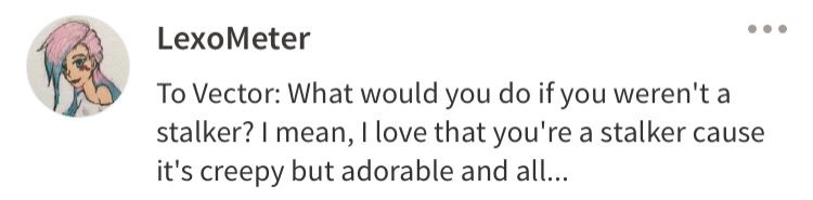 *Vector doesn't know her name, but he's familiar with her lavender scent so that's why he nicknamed Muerta that <3