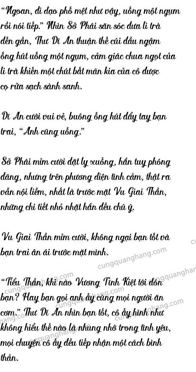 "Yên tâm, tôi không sao." cô mỉm cười nhìn hắn, "thật xin lỗi, không thể đi ăn cơm cùng anh." Cúi đầu ngồi vào trong.