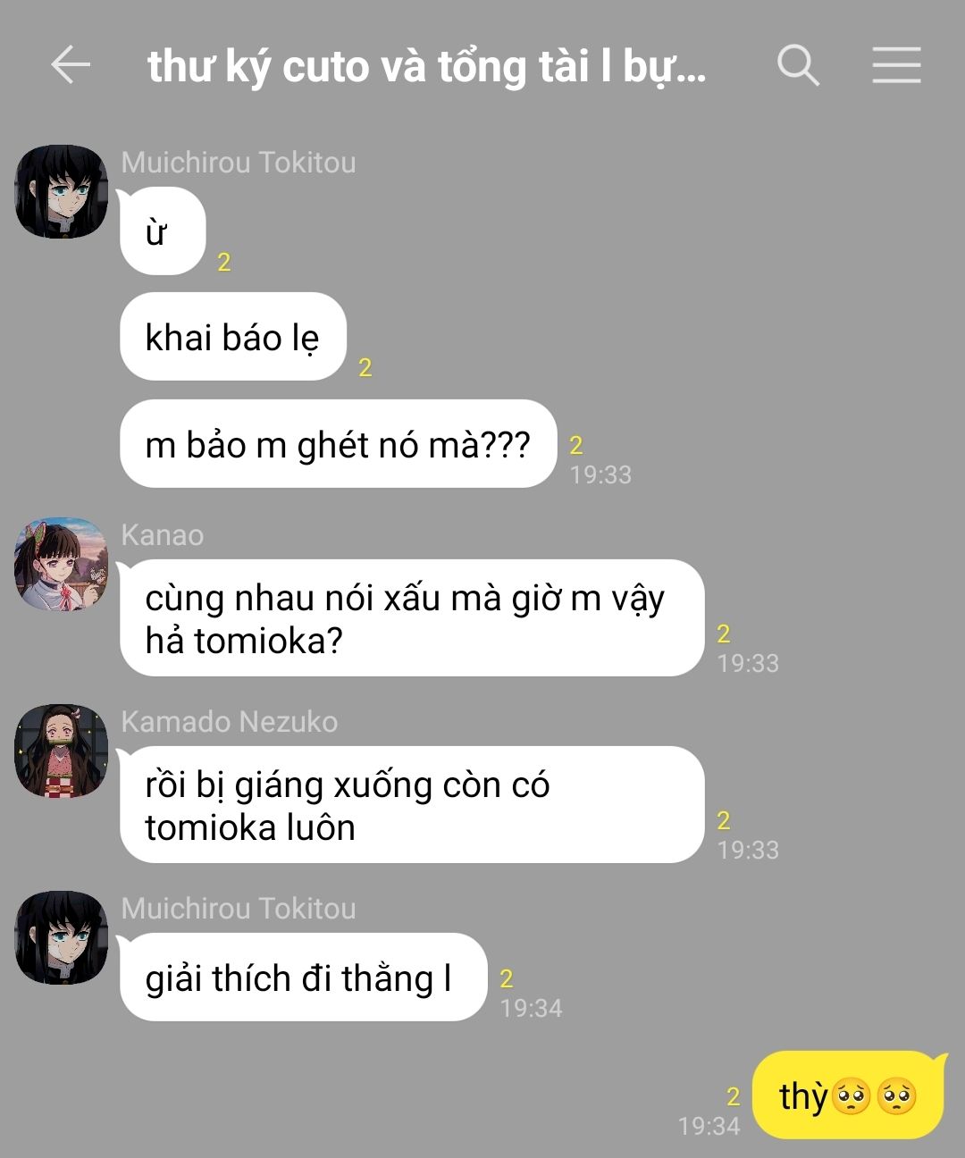 muichirou dựa vào vai giyuu thì thào, -"diễn xong nhớ khử trùng nha, mày mà bị nhỏ đó chạm vô là dơ người lắm á."