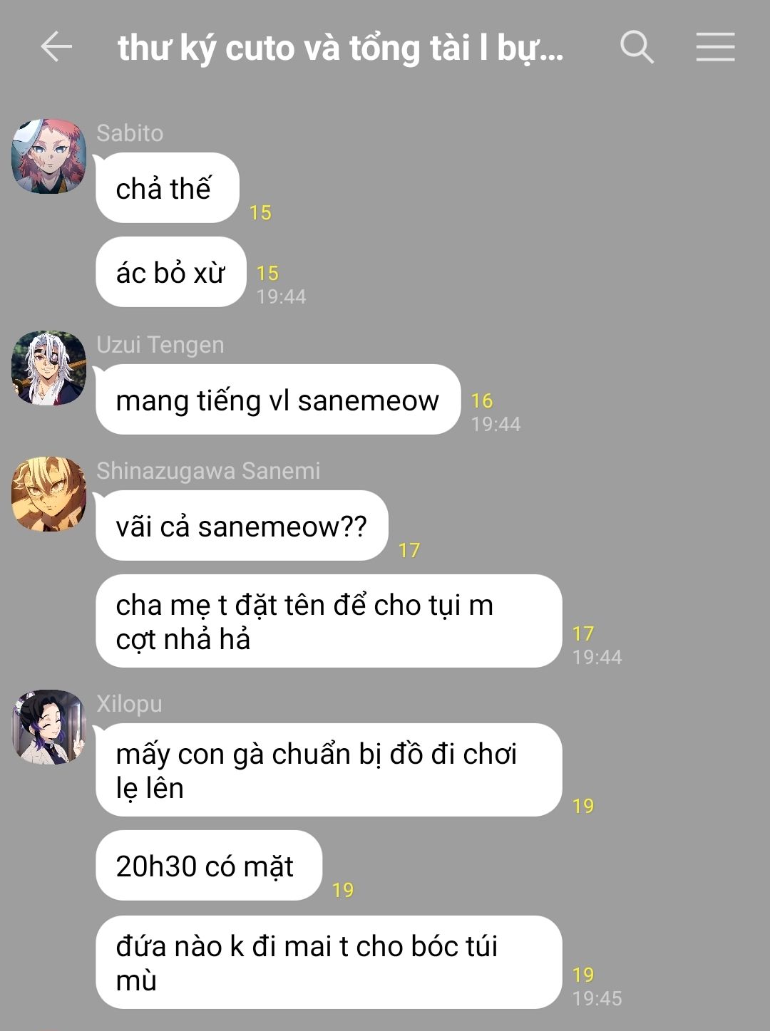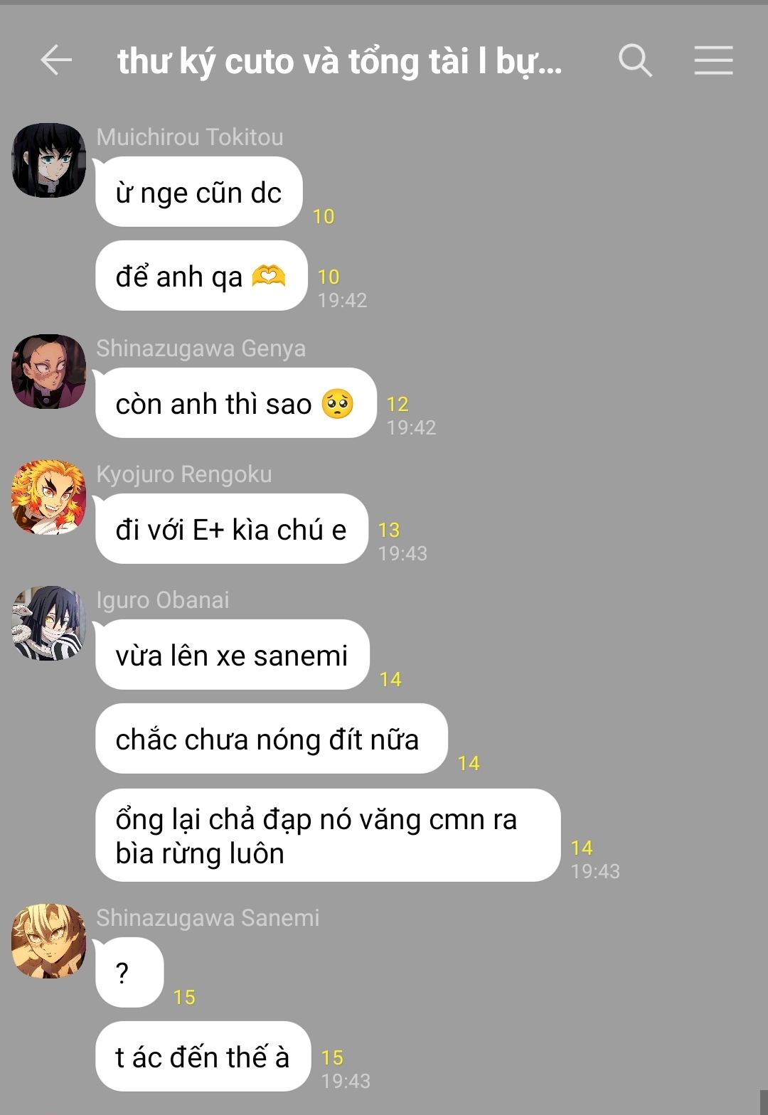 cả bàn cười rộ lên, sanemi nhướn mày nhìn cậu, mắt nheo lại, "ừm, ăn tươi nuốt sống luôn"
