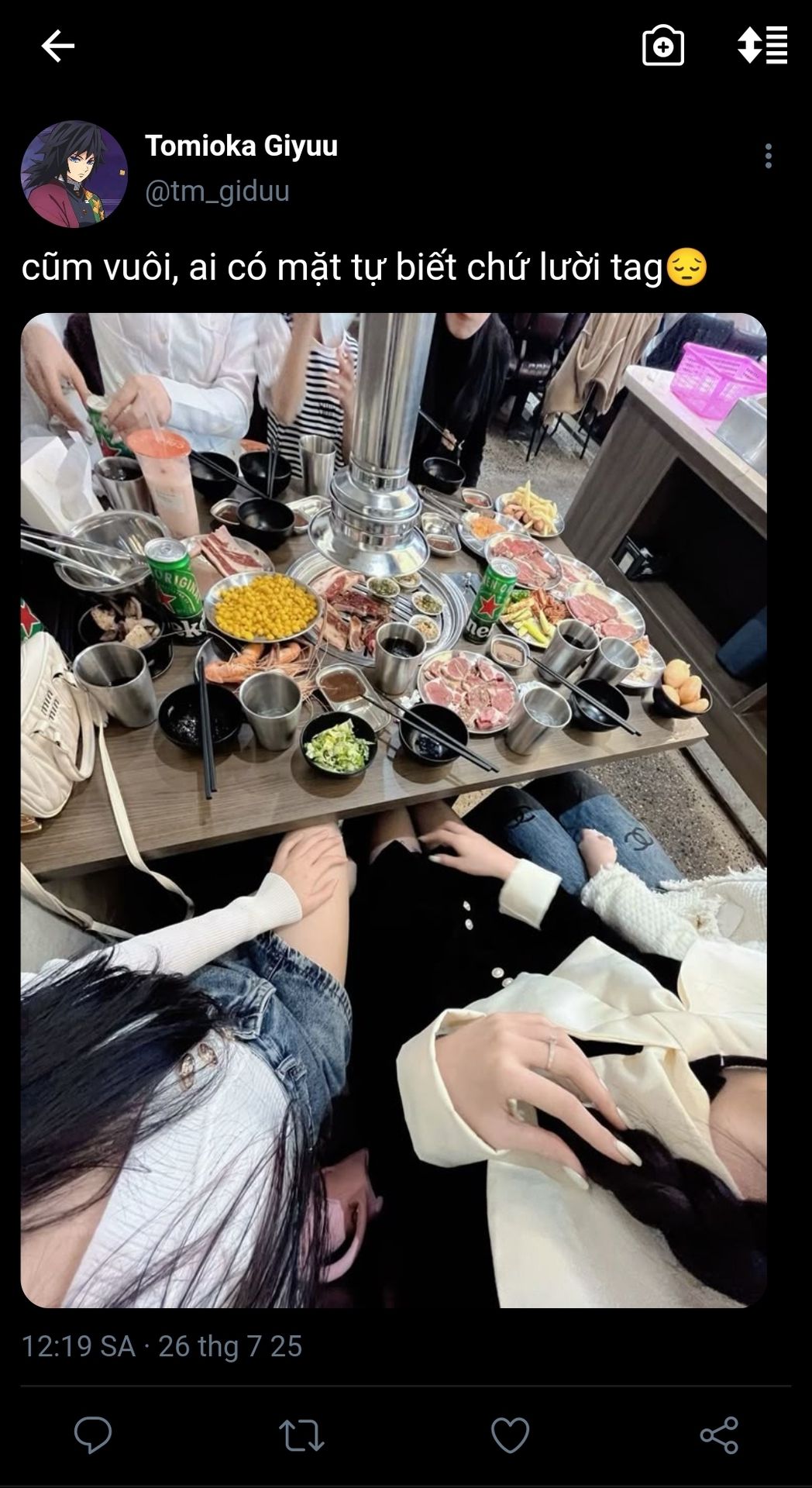 douma bật cười -"má, lần đầu tiên nghe sanemi xung phong nướng đồ. chắc tại bữa nay có công chúa nên ga lăng đột xuất hả"