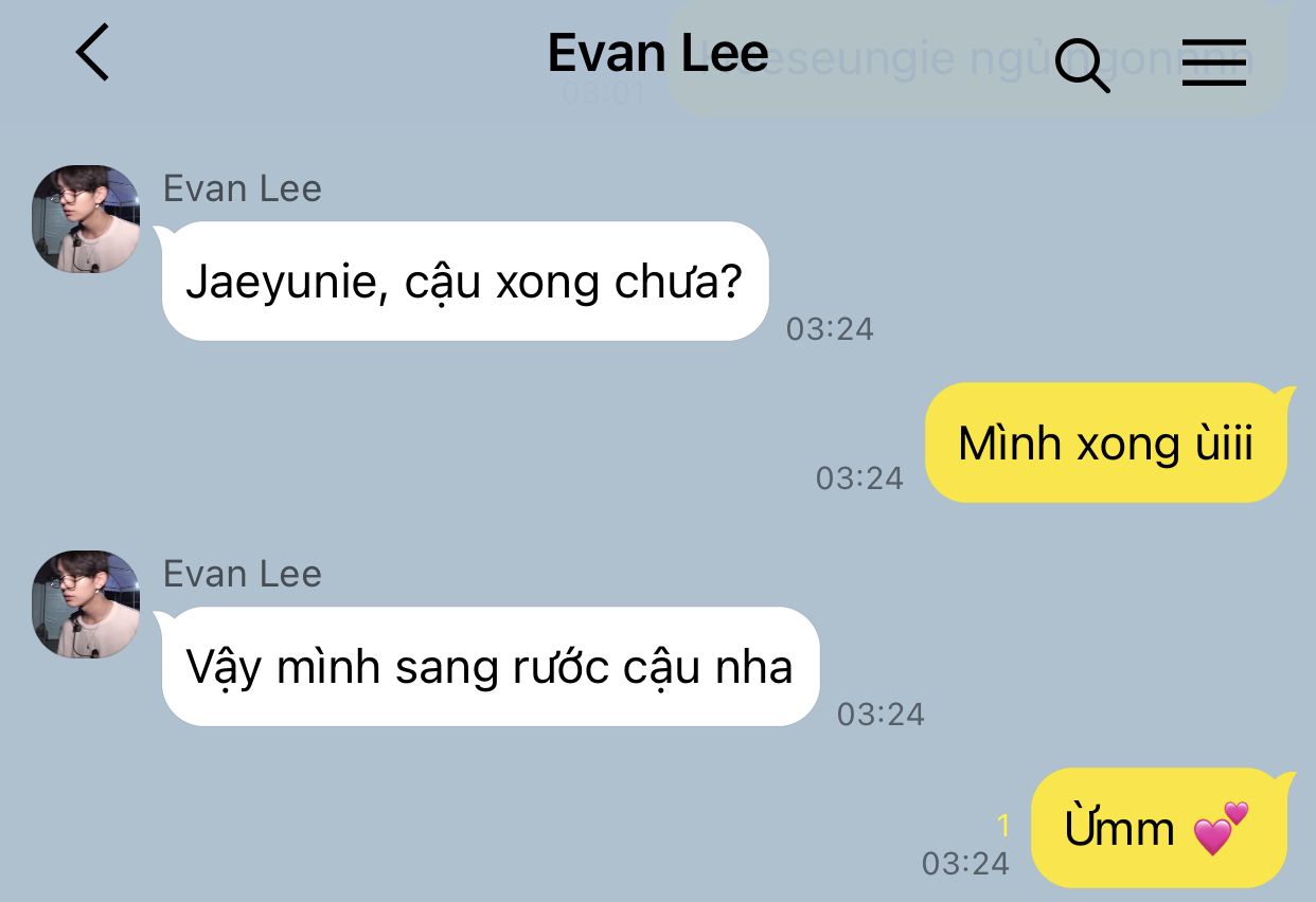 "Vậy... cậu và anh ấy đã làm gì chưa?" - đôi mắt em chớp chớp lên một cách rất ngây thơ nhưng Beomgyu lại không nghĩ trong sáng là mấy. Đột nhiên đôi má núng nính kia đỏ ửng lên, cặp mắt tròn xoe ngỡ ngàng trước câu hỏi đó giờ chỉ biết hướng nhìn xuống đất mà không dám ngước đầu lên nhìn em..