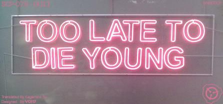SCP-078 là một tấm bảng đèn neon màu hổng dài xấp xỉ một mét rưỡi, có ghi cụm từ "TOO LATE TO DIE YOUNG" (tạm dịch : "QUÁ MUỘN ĐỂ CHẾT TRẺ"). Nó được tìm thấy ở thị trấn _____, _____, sau khi bị phát hiện bởi các thuật toán tuần tra của Tổ Chức thông qua tỷ lệ tử vong cao do nhịn đói hoặc một số hình thức tự bỏ mặc bản thân khác.
