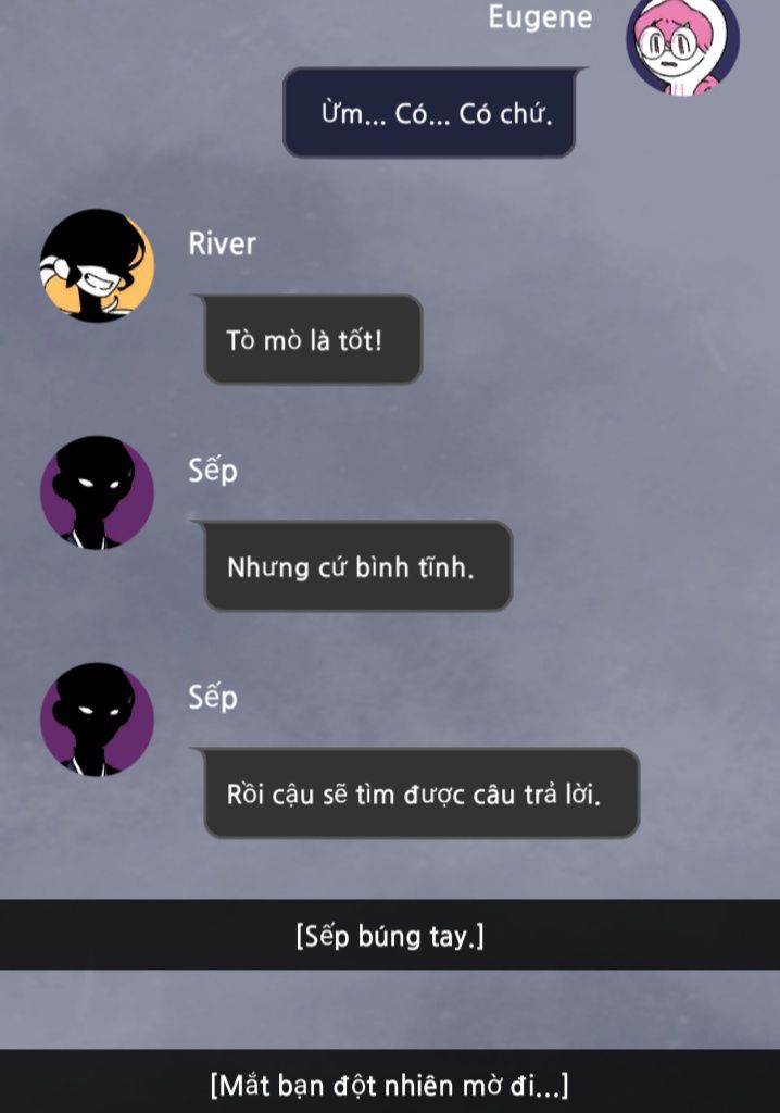 Chuyện gì đang xảy ra thế này, hình như Sếp mới vừa búng tay một cái... Mắt tôi bỗng nhiên mờ đi...Tôi bị làm sao thế này...