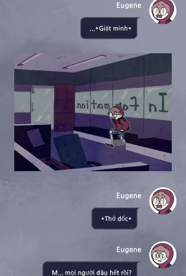 mọi người bỗng nhiên biến mất...Bây giờ chỉ còn một mình tôi... Mọi chuyện hồi nãy xảy ra giống như một giấc mơ vậy... Bây giờ tôi không có cảm giác mình vừa tiếp xúc với ai cả...Nhưng mà tôi vẫn xuất hiện ỏ văn phòng này mà ta...Chỉ là tôi ở một mình thôi không có 4 người hồi nãy.