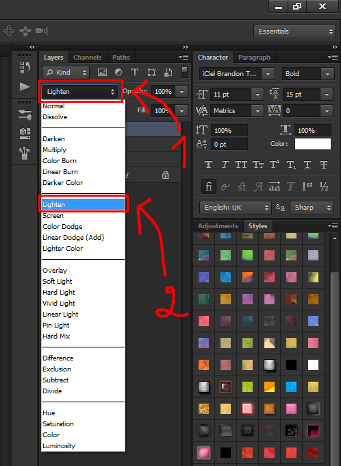 Bước 11: Nhân đôi layer các bạn đã làm mờ ban nãy, và chọn mode lighten