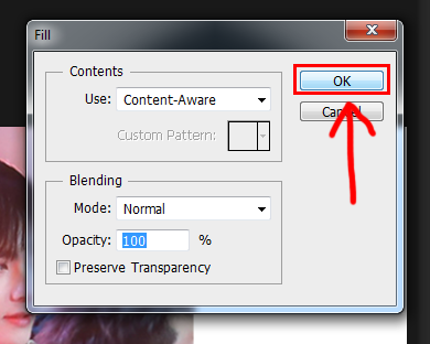 Bước 4: Sau đó khoanh vào chỗ còn trắng trong hình. Lưu ý, các bạn nên khoanh vùng sao cho sát vào viền của hình mà các bạn chèn vào, như vậy nó sẽ đúng với mong muốn hơn, đỡ phải chỉnh nhiều