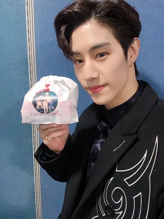 Màn pháo hoa dần kết cũng là khi anh Mark, anh JinYoung gửi tới mọi người một lời chúc năm mới vô cùng đặc biệt, không gì độc đáo hơn, đó là những tấm thiệp cưới!