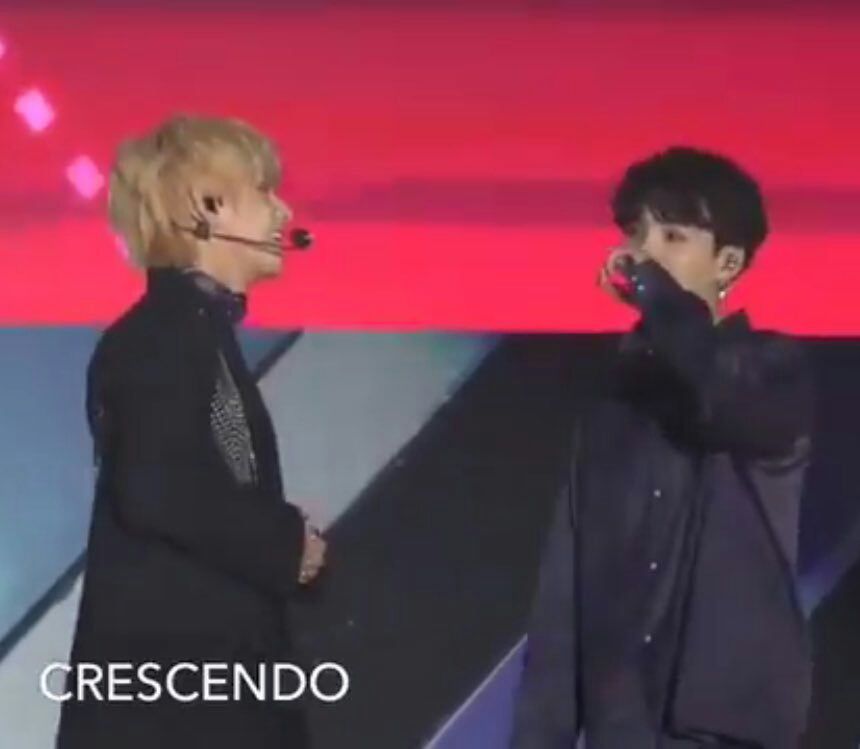 Lúc đứng trên sân khấu, bạn Tae nỡ đứng xa anh quá nên anh Đường của chúng ta đã phải chỉ tay xuống đất như để nhắc nhở em tiến gần lại.