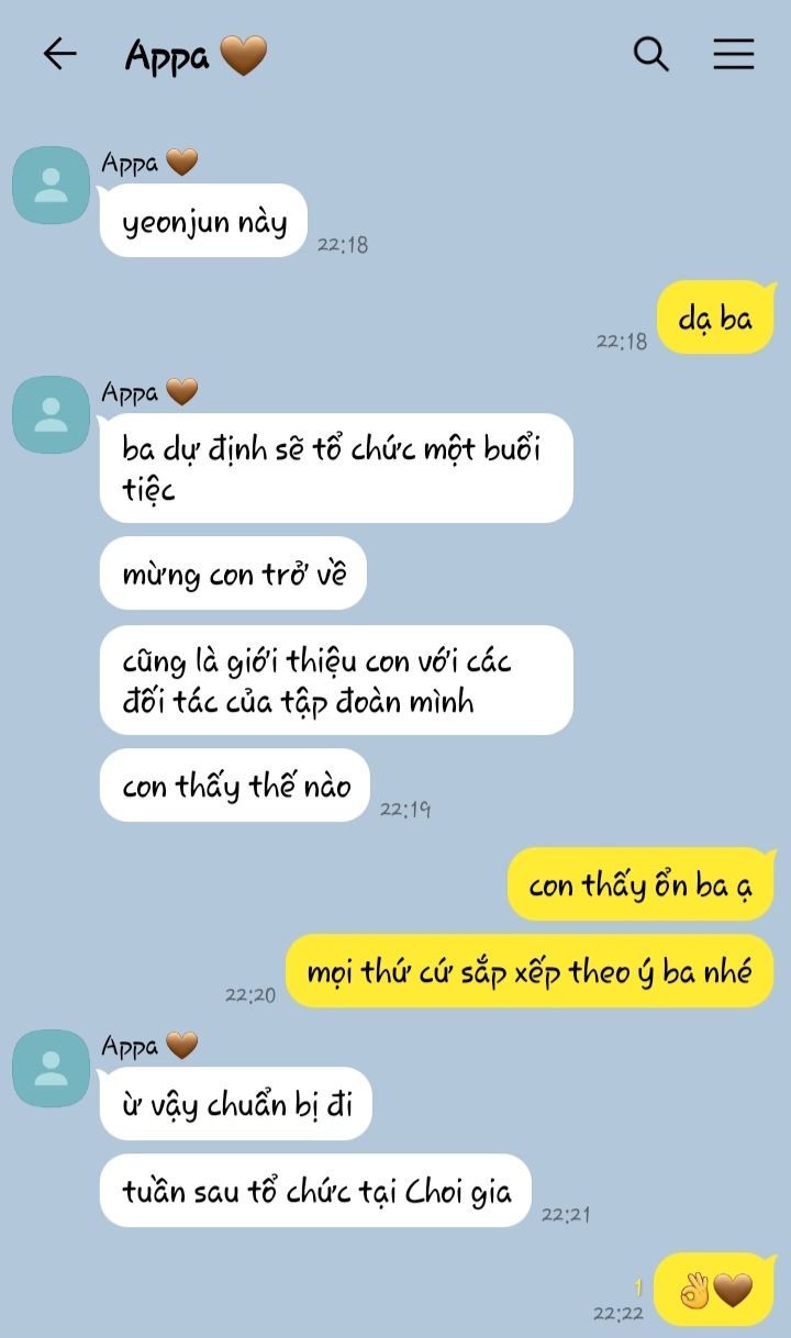 Cuộc họp hội đồng kết thúc trước giờ trưa, Yeonjun bước ra khỏi phòng họp. Anh thở phào nhẹ nhõm vì mọi thứ diễn ra khá suôn sẻ. Ít nhất cũng không có ý kiến phản đối từ mấy lão cáo già đầy mưu mô.