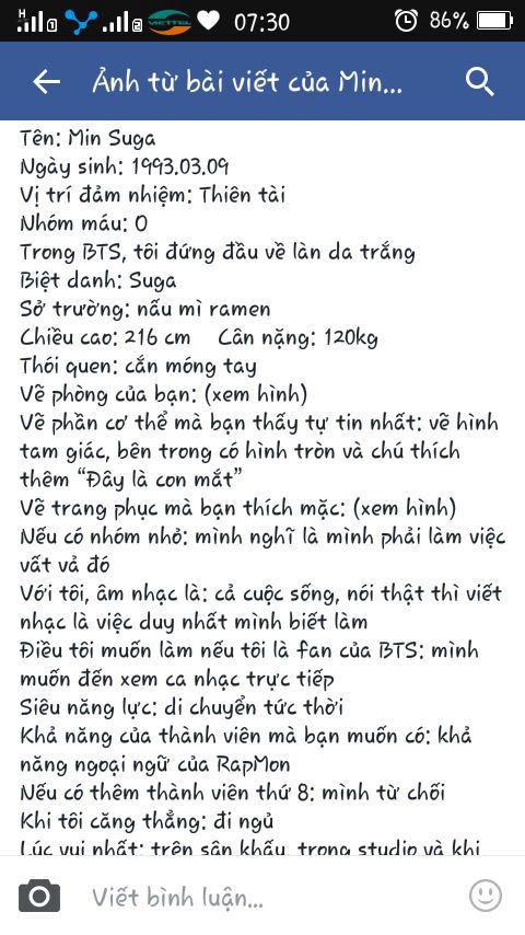 Profile 2015 Suga viết