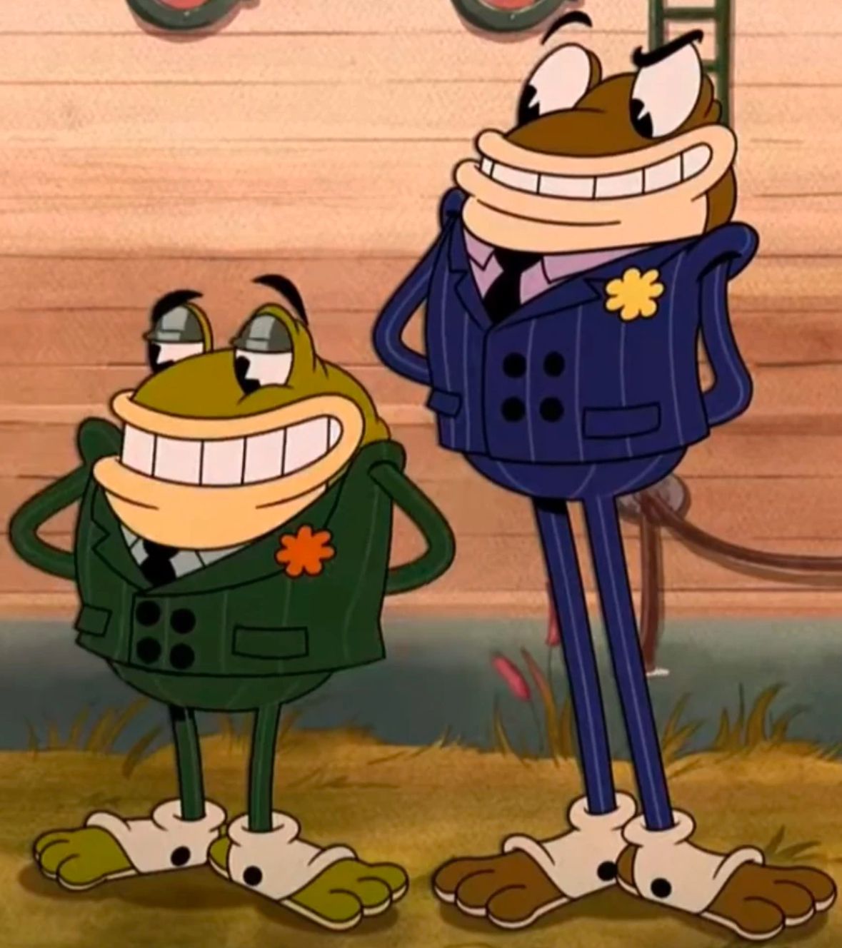 Ribby and Croaks (Two Frogs who own the Clip Joint! They agreed to stop fighting with each other out of love for their late mother! Made a deal with the Devil to gain their showboat! They're actually decent guys when you get to know them! Ribby is voiced by Jordan Peele and Croaks is voiced by Keegan Michael Key!)