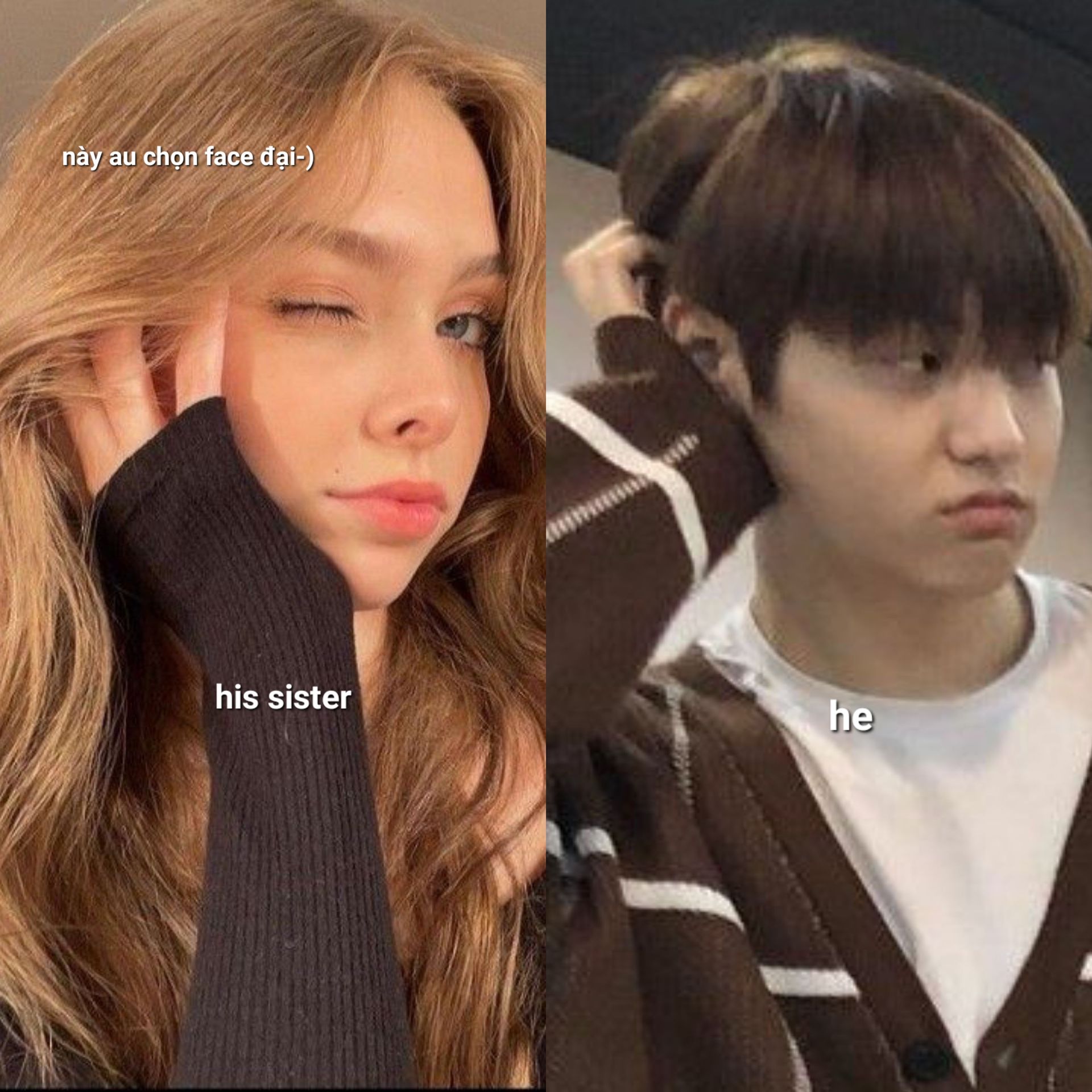 con bé có trang điểm đó, không hiểu mắt soobin nhìn thế nào mà cậu bảo là mặt mộc, em ấy chỉ trang điểm nhẹ thôi. Do sở hữu da mặt đẹp và đôi môi mịn có lẽ em hợp với vibe nhẹ nhàng thôi. Tiếc thay cho em có một người anh trai ruột thừa không có mắt thẩm mỹ.