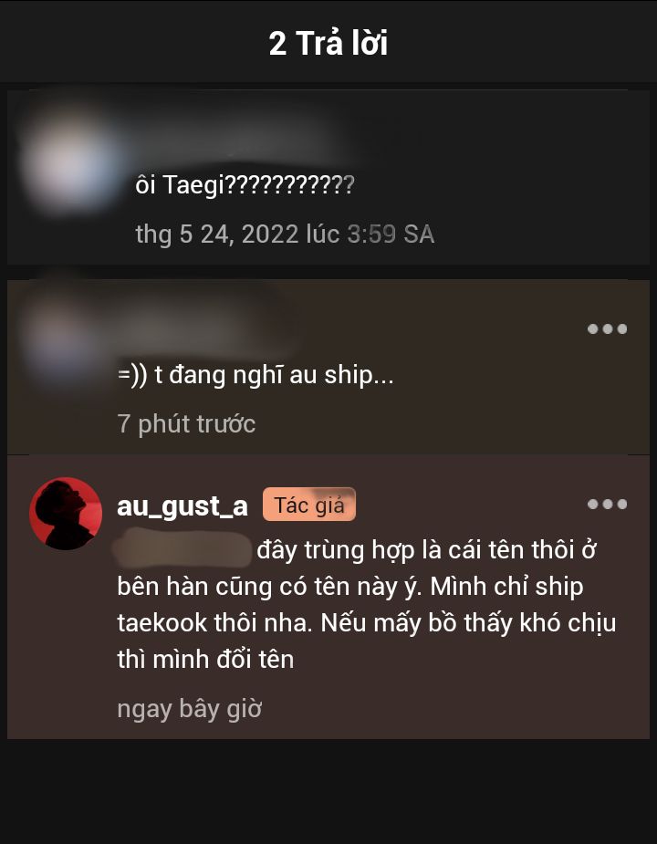 Woo đã rất shock khi đọc cmt này, thật sự rất shock luôn á. Mọi người nói mình nhạy cảm cũng được nhưng mà cảm giác mình ship taekook mà bị nói là ship ***** thật sự rất hụt hẫng luôn.