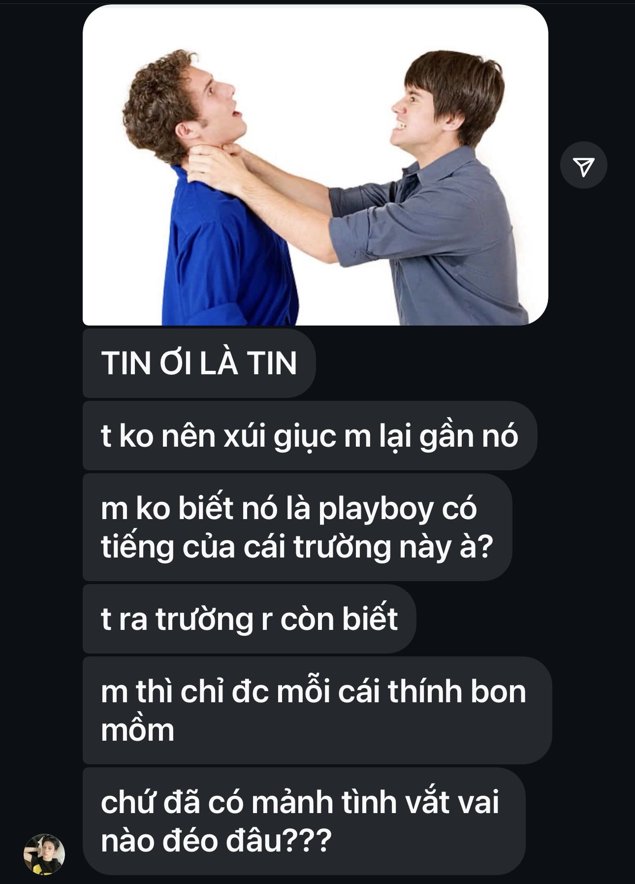 >> user222: @user111 nói chuẩn đấy, có khi vài bữa lại có tin đồn với người khác