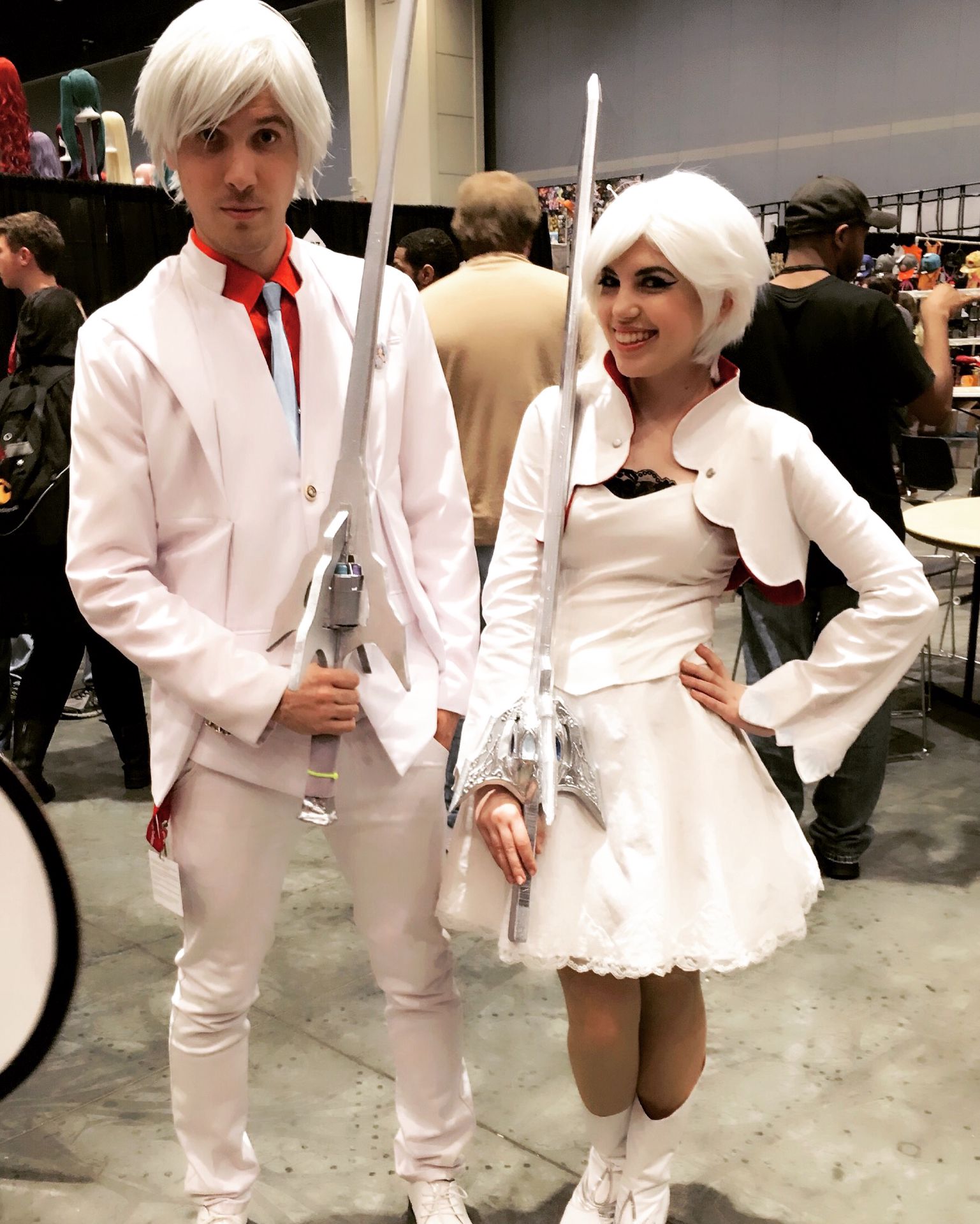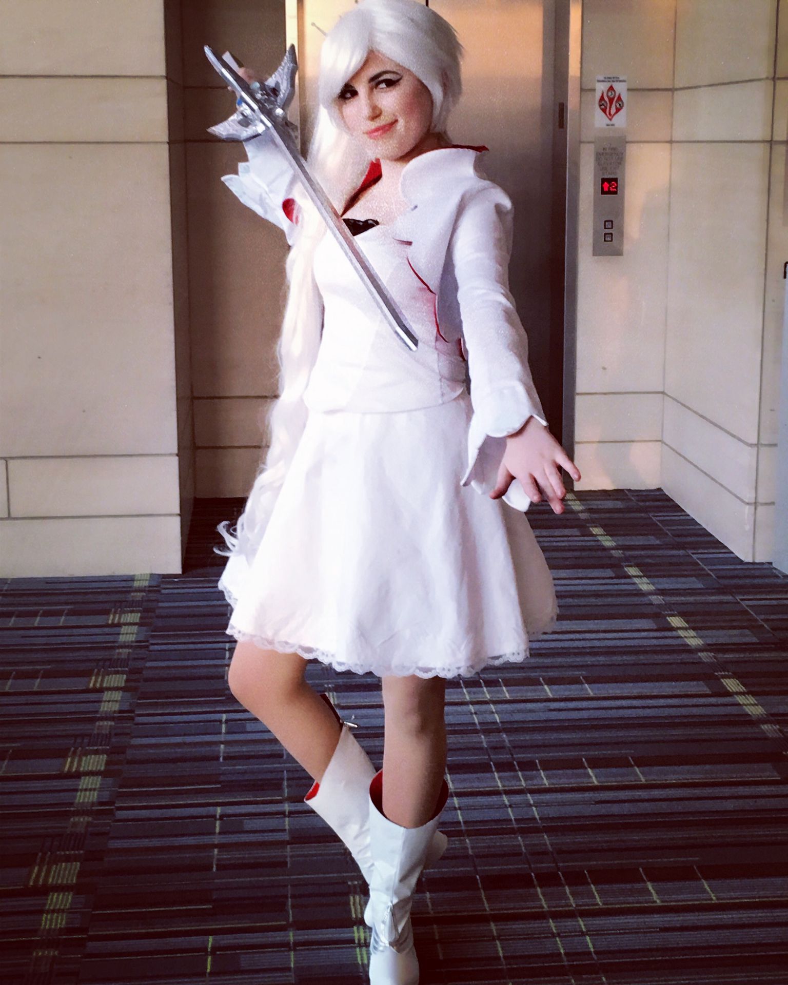 I made my own Myrtenaster, and I also crafted Rose's Crescent Rose. And, this genderbent Weiss Schnee here was my FAVORITE cosplayer today! He was great!