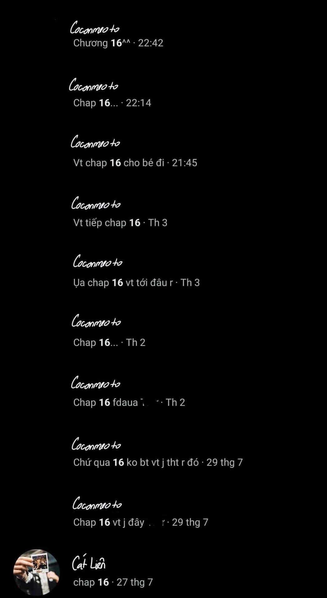 - coconmeoto: kiếp sau có chap mới, ai có pặc nơ siêng viết tag vào cho em xin tí giống.