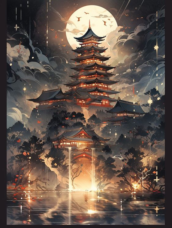 Hai con thuyền nhỏ đang được chèo dần về phía Tây của toà tháp khổng lồ. Địa điểm đó là cửa vào Địa Ngọc Các. Nơi các ca cơ, nghệ sĩ, thi sĩ cùng những quan lại tụ về để có thể làm việc hoặc ăn chơi, giải toả căng thẳng.