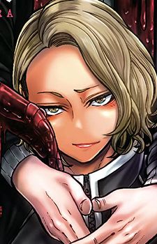 Shiki then turn to the man with a mask named Jin Kougasaki. Jin is a boy with light-colored hair and slanted eyes. He wears the standard Rasetsu Academy uniform along with a face mask that assists in concealing the many scars that line the majority of his body, including the lower half of his jaw. These scars were afflicted upon Jin during his childhood by his father, Momoido Hayate and have since then been stitched.