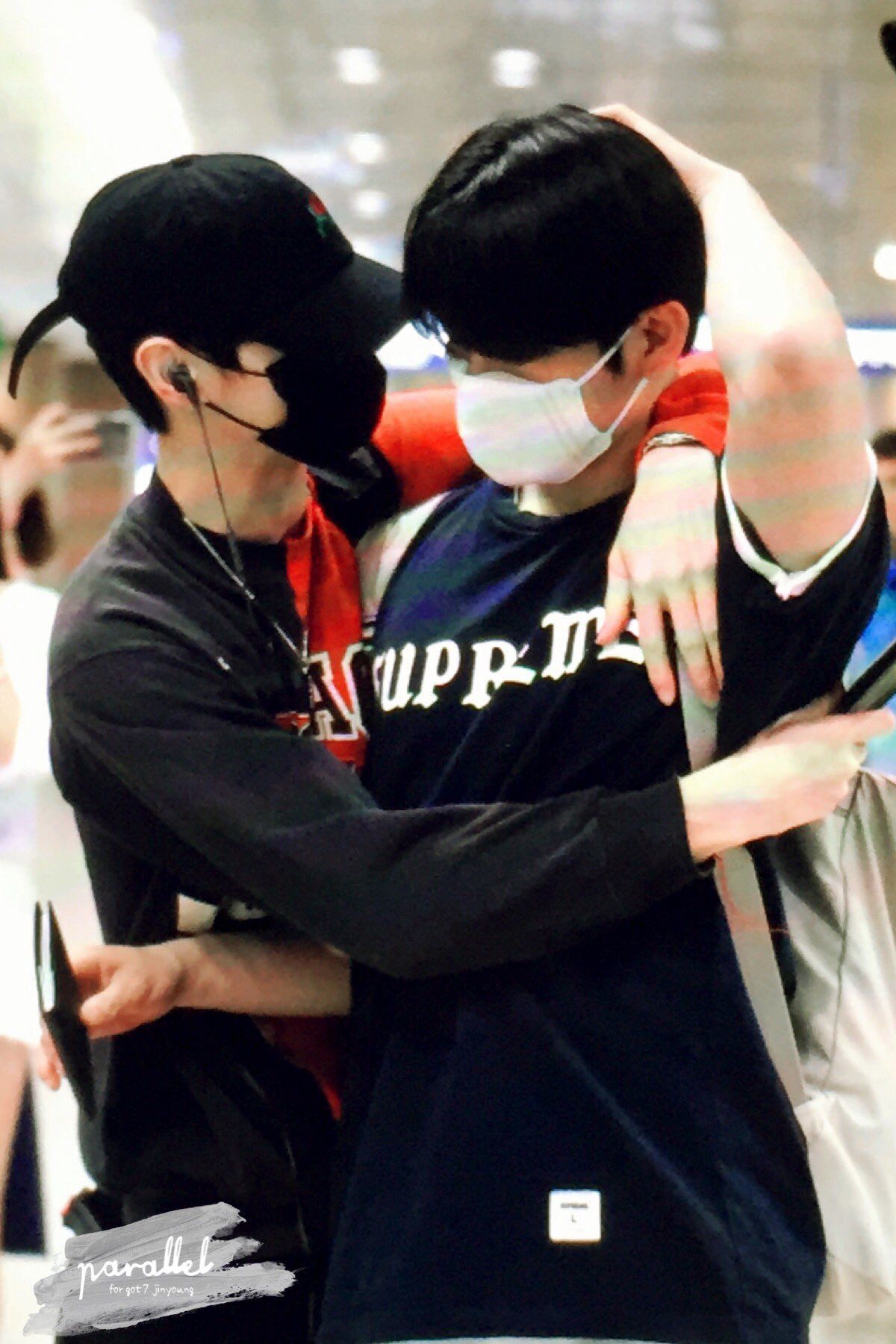 Jackson gọi với lại, Jinyoung chỉ biết cười khúc khích, buông anh bạn của mình ra.