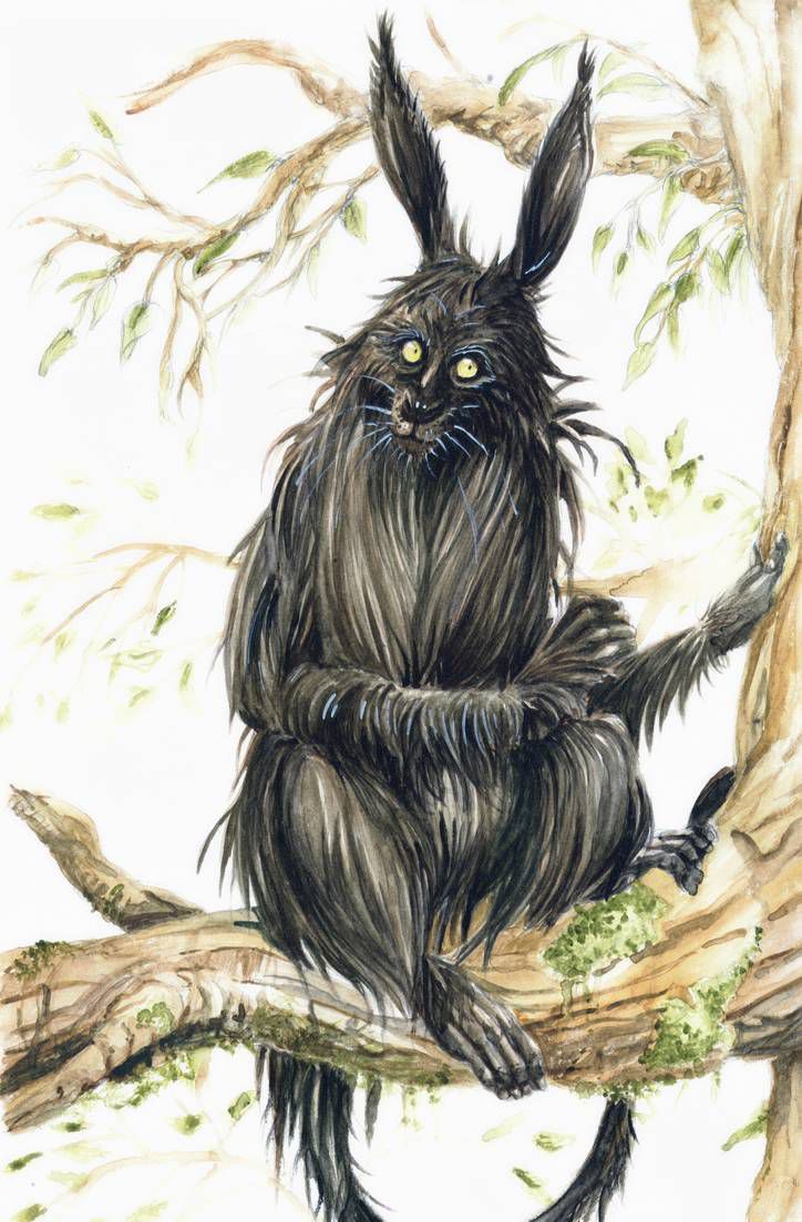 (3) Phooka: Một loài yêu tinh. Nhìn trông không thân thiện lắm :) Mình đi search thì nó có khá nhiều hình dạng, mặt dê và mặt thỏ là chính, lông tối màu và nhìn ghê vcđ...