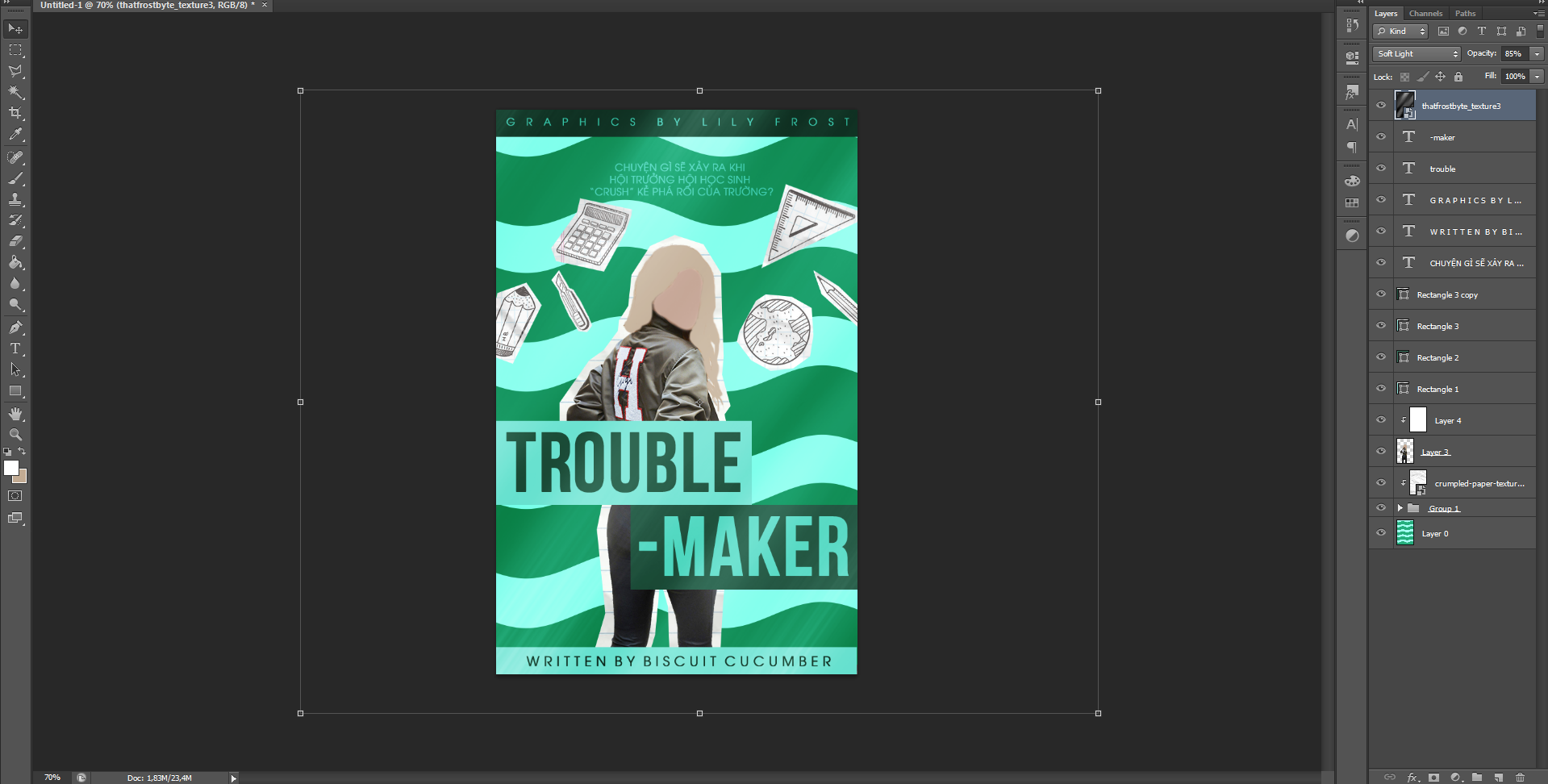 Cover hôm nay tớ sẽ hướng dẫn các cậu làm chính là cover (đạt giải đặc biệt trong contest #3) "Troublemaker", một cái bìa hết sức nhảm nhí hewhew.