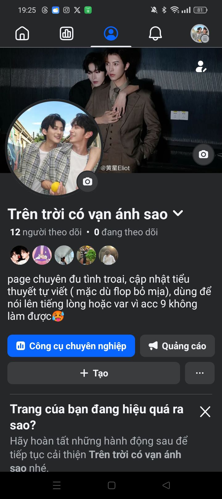 đây là 2 page của tuii, mọi người muốn có thể ủng hộ theo dõi nha, tui sẽ cập nhật tình hình truyện trên page nhe ( page có 12 người theo dõi á, page kia tui tạo phòng hờ). Truyện có thể hơi ooc. Buổi tối vui vẻ ngủ ngon nhe mn-))))
