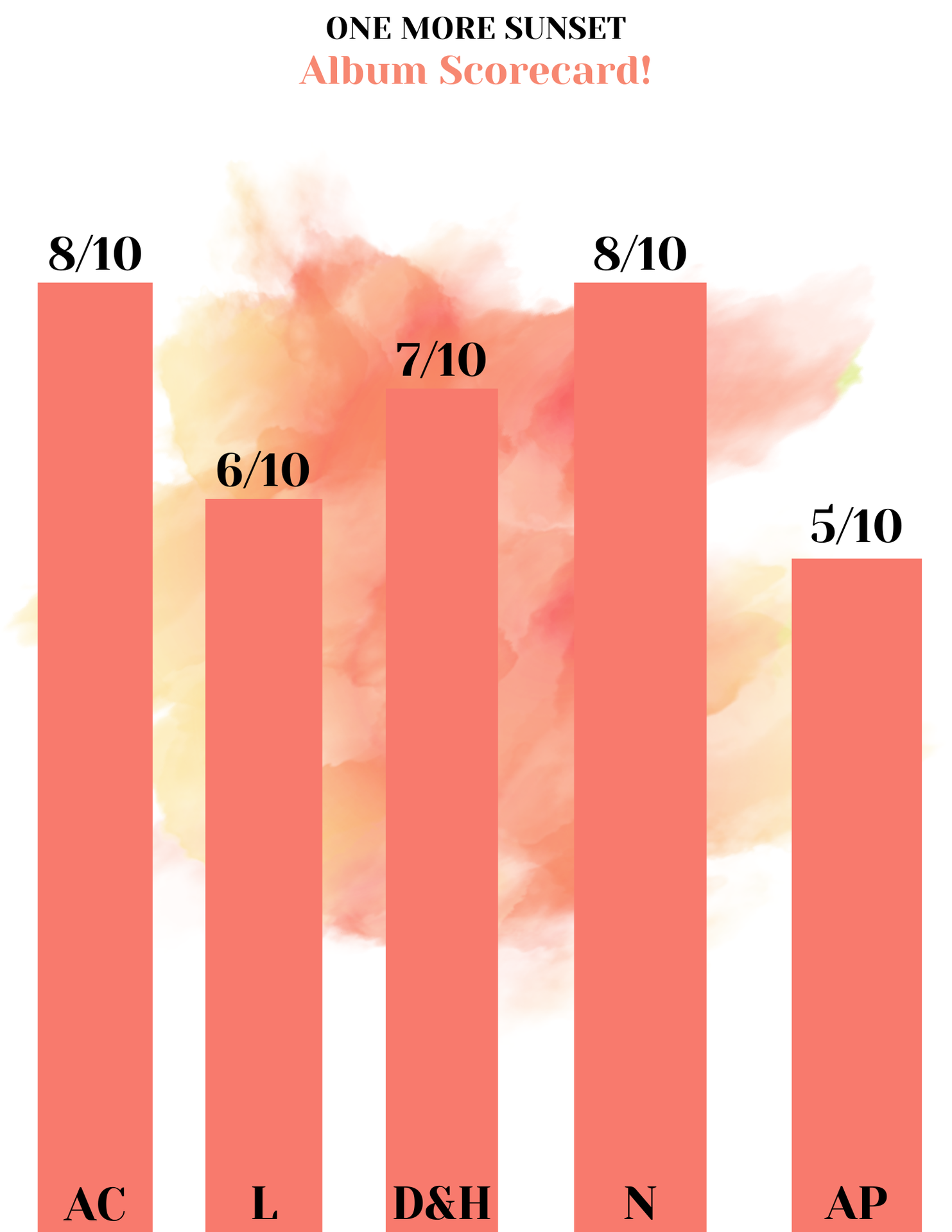 All eighteen participants should have received their playlists and scorecards! Thank you for participating in the giant AOTY category! The majority of you are in other categories, so I will see you again when those results drop!