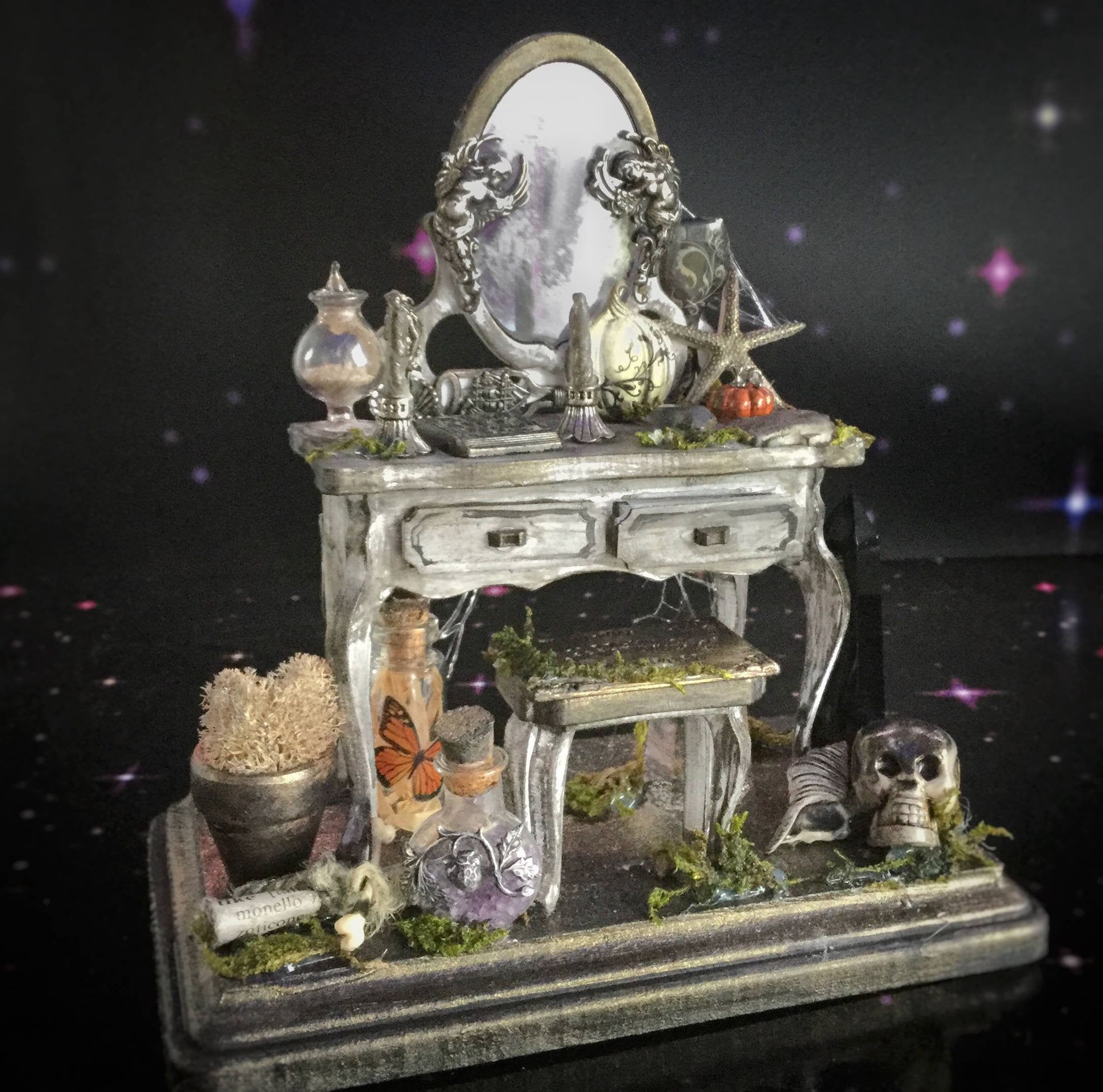Uses in his craft: beads, flowers, sugar, mythology, crystals, faerie gardens