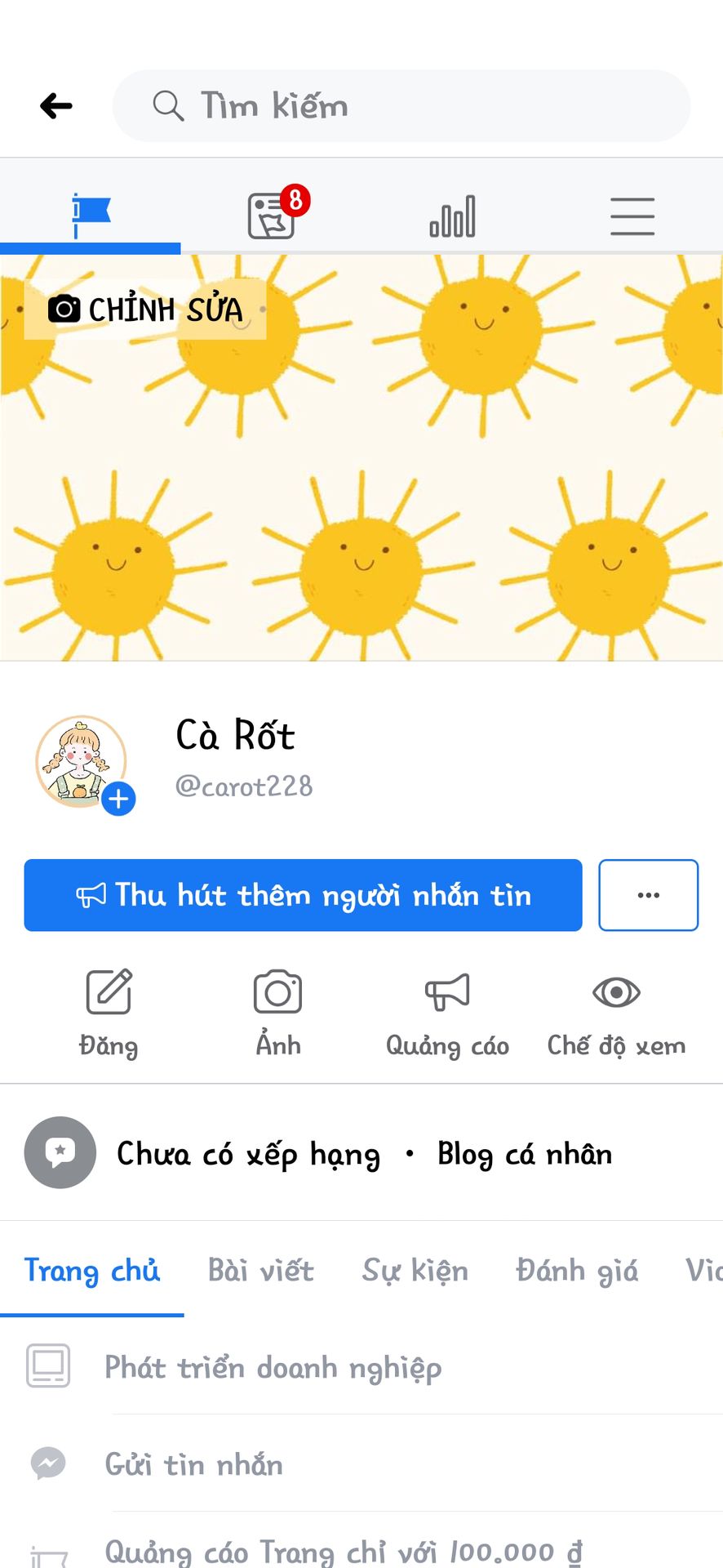 Đây là link page cá nhân của tớ: https://www.facebook.com/carot228/