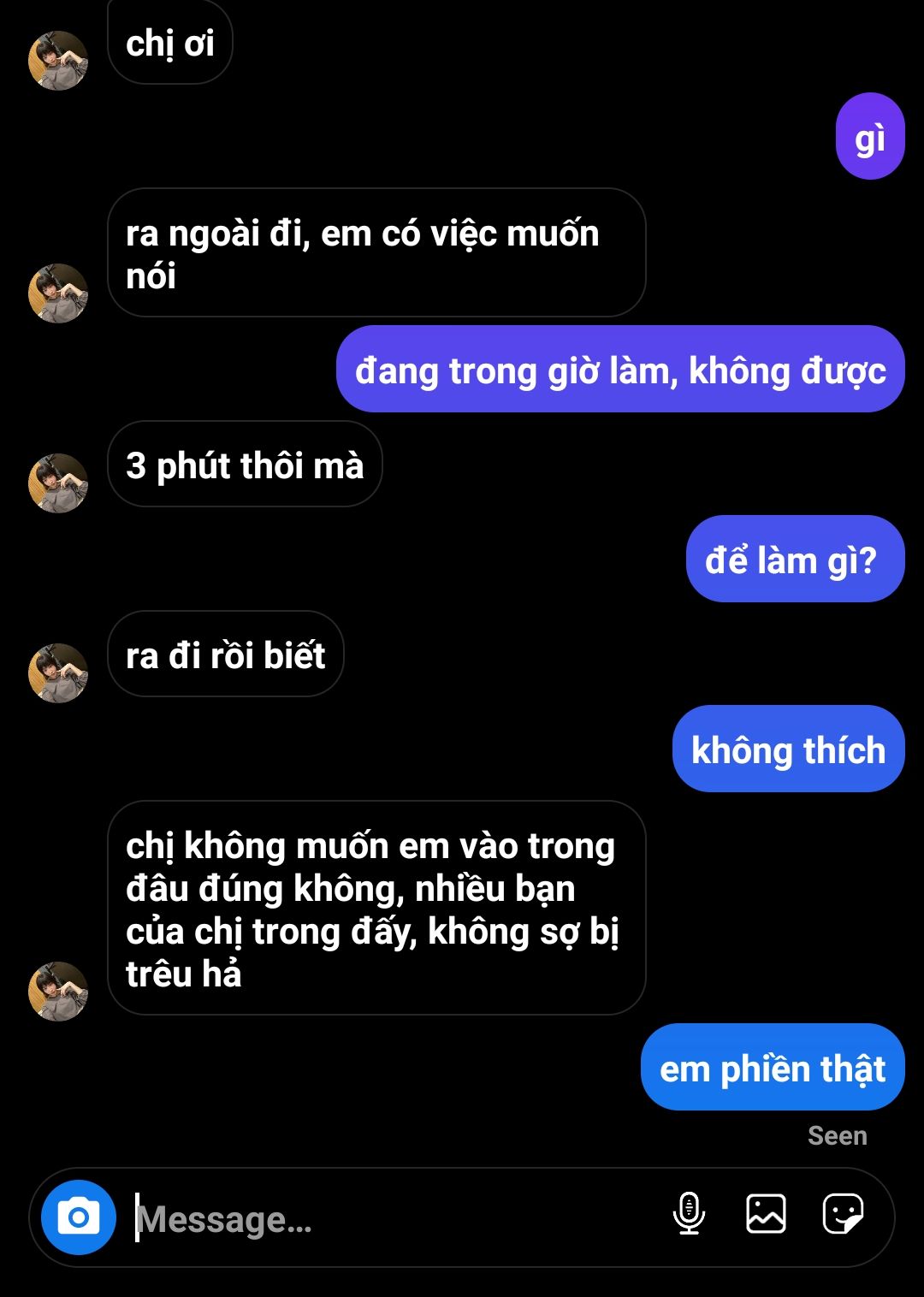 Nàng đang trong giờ làm thì bất ngờ nhận được tin nhắn.