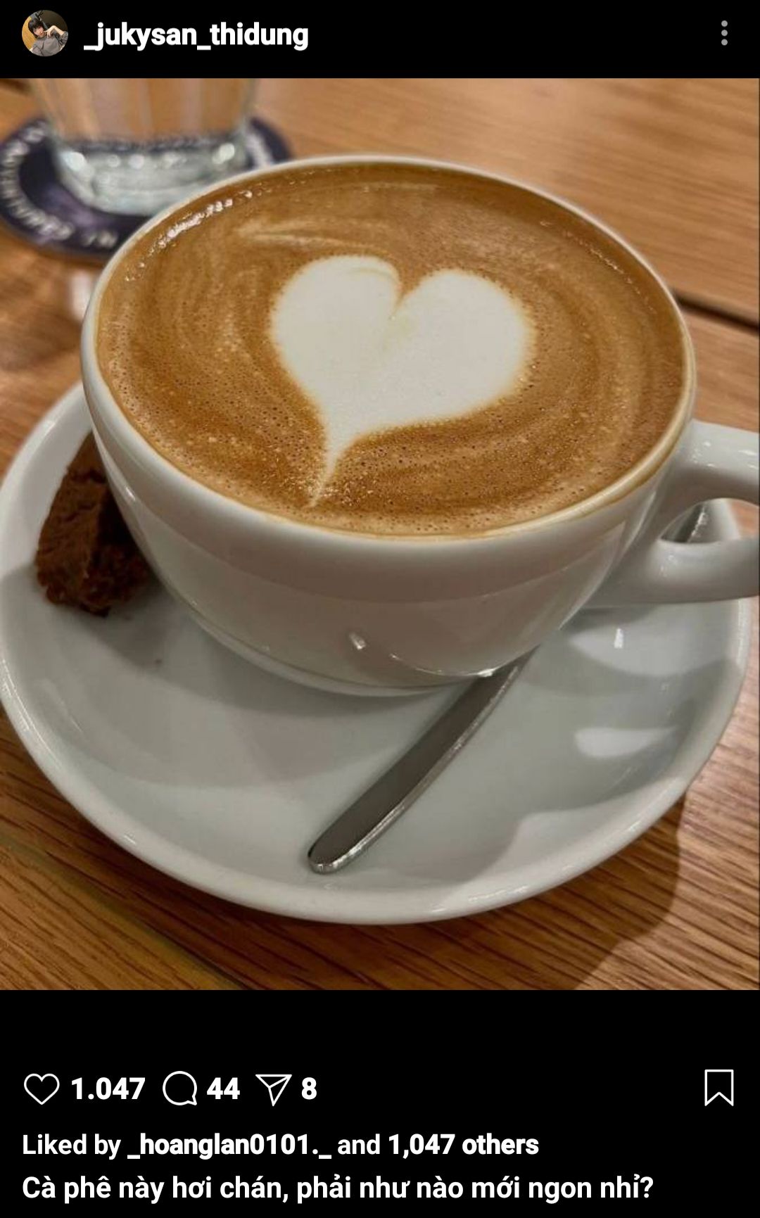 Hoàng lan nhíu mày nhìn ly cà phê.