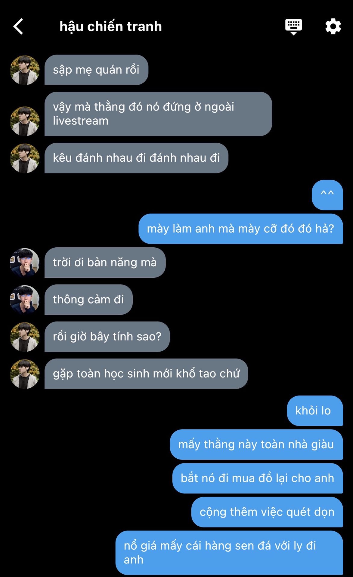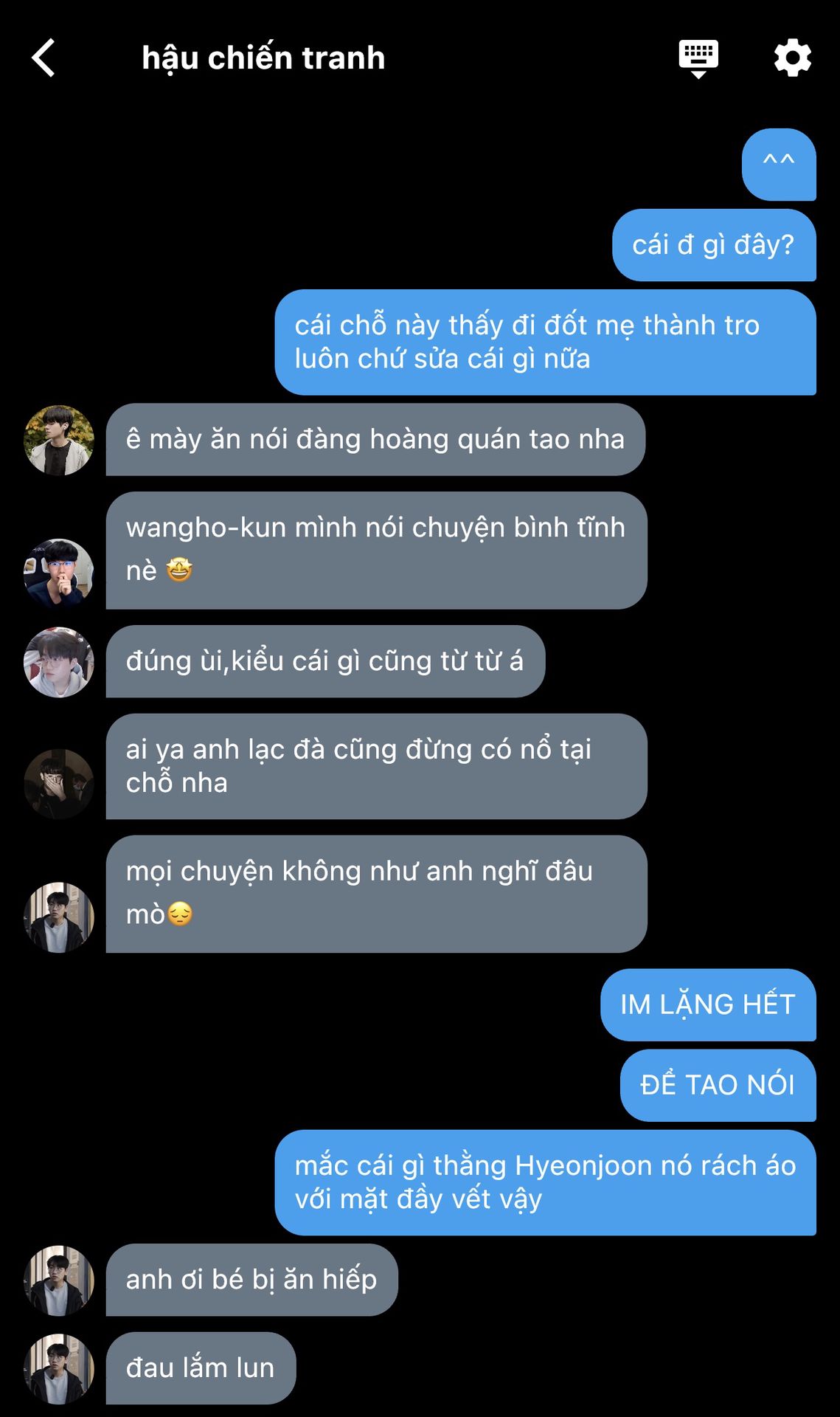 Cả đám nhìn anh Wangho chỉ có thể cười nhẹ cho qua,còn ông anh thì sắp xẻo thịt bọn này.Nhưng rồi anh cũng thở dài rồi giao nhiệm vụ cho chúng nó làm như một người anh cả