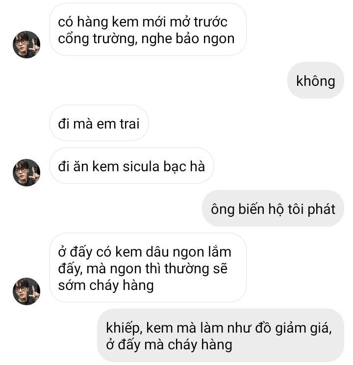 "Ew, đừng nhắc cái vị kem đấy trước mặt em."